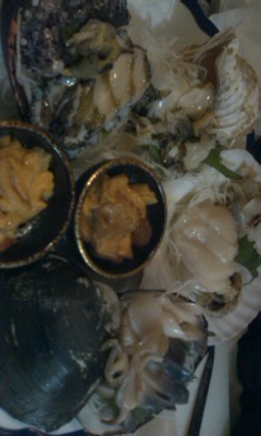 活貝4種盛り(一皿)と塩水ウニ(2人前)です。(2日前予約)